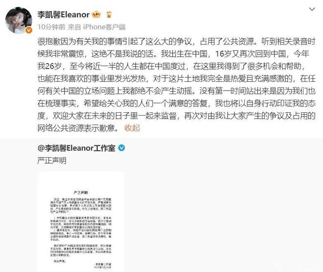 眼瞅着舆论炸开了,李凯馨工作室才慢悠悠发声明,说录音是恶意剪辑,自家艺人对中国那是“热爱且感激”。李凯馨本人也转发称“听到录音很震惊,绝不是我说的话”,又是强调在中国长大,又是说事业机会来之不易,字里行间都是“求放过”的意思。可这回应来得太晚了——从录音曝光到发声明,整整过了黄金24小时公关期,期间她还被拍到跟闺蜜拍搞怪视频,压根没把这事当回事。网友当场就怒了:“赚着内地的钱,转头就骂娘,道歉还这么敷衍,当我们是提款机吗?”