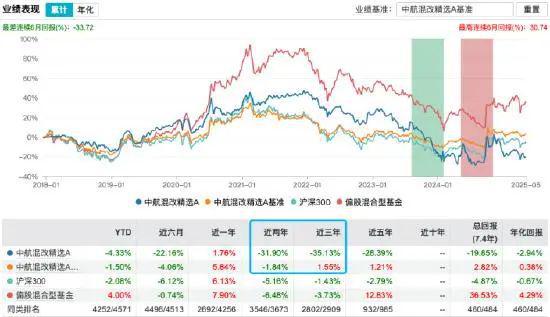 从业绩数据来看,中航混改精选表现惨淡。今年以来,该基金已跌4.33%,近六月跌幅达22.16%。长期业绩更是不佳,近两年、近三年累计跌幅均超31%,分别跑输业绩基准30%和36%。其中,邓海清2023年12月开始管理中航混改精选,持有大约有1年半,任职亏损了13%,多少有点刺眼。