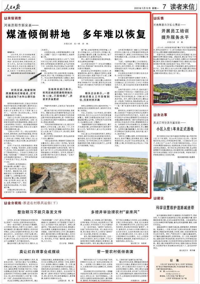 《人民日报》河南洛阳市新安县——煤渣倾倒耕地 多年难以恢复(来信调查)