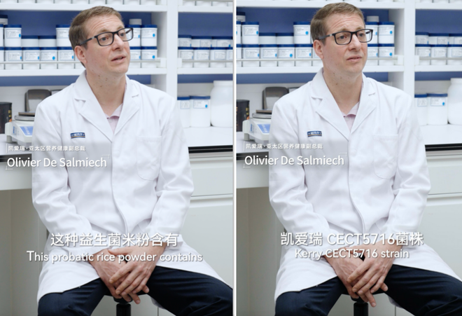 秋田满满借助全球供应链优势,与HMO领域先锋虹摹生物达成合作,实现HMO在米粉中的添加,为辅食阶段的宝宝构建营养屏障。 宝宝在辅食添加初期,肠道发育还未完成,体内淀粉酶含量低,未完全适应半固体/固体食物,所以容易出现很多消化问题。同时,我国新生儿过敏数量却逐年上升,过敏也成为家长非常关注的问题,为此更亲和,也是秋田满满这款新品的亮点,主要体现在以下两点:l 联手凯爱瑞添加母乳源益生元+益生菌:秋田满满与全球领先的食品配料公司凯爱瑞达成合作,产品中特别添加了母乳益生菌在内的三种益生菌与益生元(2’-岩藻糖基乳糖),更加亲和人体,安全放心。凯爱瑞・亚太区营养健康副总裁 Olivier De Salmiech 在采访中说道:“这种益生菌米粉含有凯爱瑞 CECT5716 菌株。从母乳中分离出来的益生菌,往往更有吸引力。经过严格的筛选,我们团队从百余株健康母乳菌株中分离得到了 CECT5716 菌株。多篇临床文献支持其在婴幼儿肠道与免疫健康的功效,亲和人体,安全放心。”▍核心亮点三:搭配维C,高铁吸收“双保险”