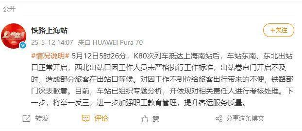 上海南站员工迟到,多人被困出站口?官方发布情况说明