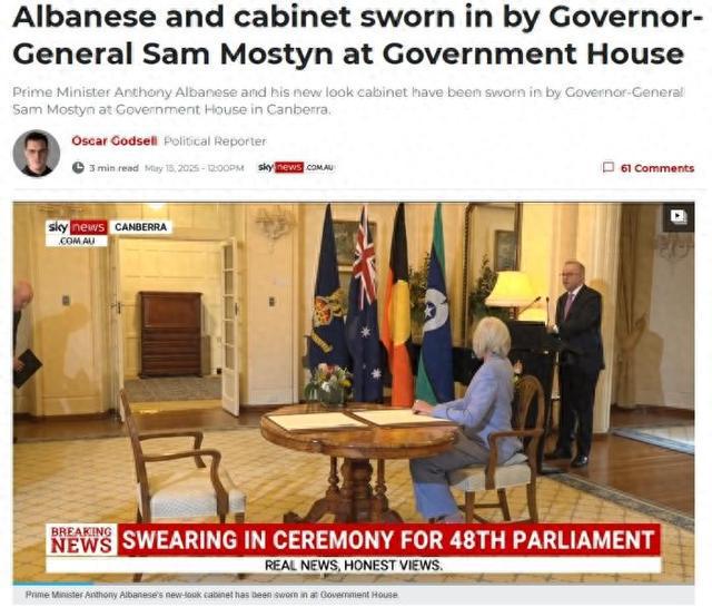 据美联社报道,澳大利亚新一届内阁于当地时间13日宣誓就职。