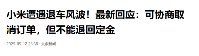 小米遭遇退车风波!小米竟称:可取消订单,但不退定金!网友爆评