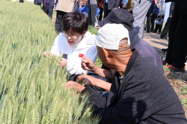 实地观摩,见证科技兴农新成果。上午九点,与会嘉宾前往滑县白马坡高标准农田示范区。在50万亩良田的核心区域,记者看到,麦子正在开始泛黄,麦田里的麦子像列队的士兵,行排齐整,高度一致,密实丰厚,给人以沉甸甸和扎实有力的强烈视觉冲击。那粗壮的茎秆在阳光的照射下泛着油白的光色,显得“身强体壮”;麦仁颗粒饱满,密密匝匝,仿佛要撑破麦皮,迫不及待地从麦穗中“脱颖而出”,来到千家万户的餐桌之上。