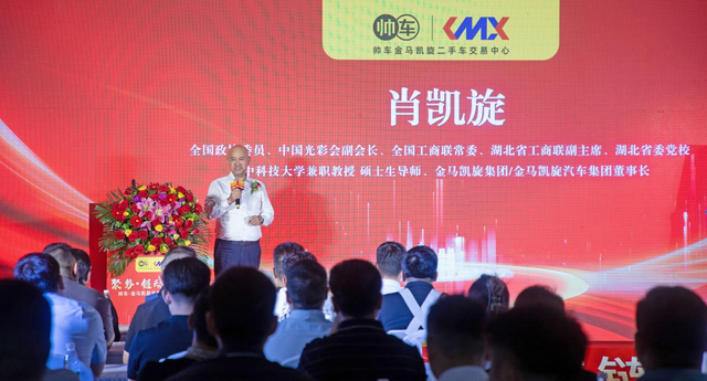 仪式现场,全国政协委员、中国光彩会副会长、全国工商联常委、湖北省工商联副主席、湖北省委党校华中科技大学兼职教授硕士生导师、金马凯旋集团/汽车集团董事长肖凯旋在致欢迎辞中表示:金马凯旋集团深耕中部市场、推动产城融合的重要战略布局,项目将构建集二手车交易、汽车后服务、文化体验、商业配套于一体的全产业链生态圈,助力郑州打造全国领先的二手车消费中心。”