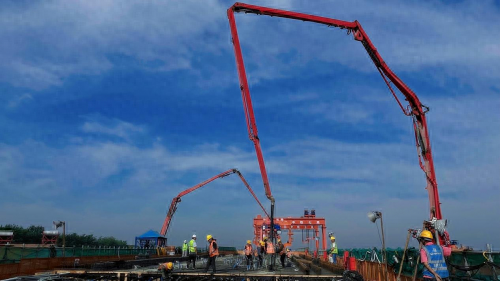 分部经理吕强介绍说,为确保连续梁浇筑顺利完成,保障施工过程安全质量,浇筑前,分部多次召开专题会。针对混凝土浇筑方量大,钢筋密集布料困难等施工难题,制定切实可行的混凝土浇筑方案,对每步施工顺序、人员、机械设备配置等均进行充分的安排与部署,严格按照标准化施工流程及要求对每一名作业人员进行技术交底。同时,关键工序实行领导带班制,结合工艺流程组织技术人员、安全人员、试验人员进行全程盯控,确保每个环节都精准落实、规范执行,为浇筑任务的顺利完成筑牢根基。