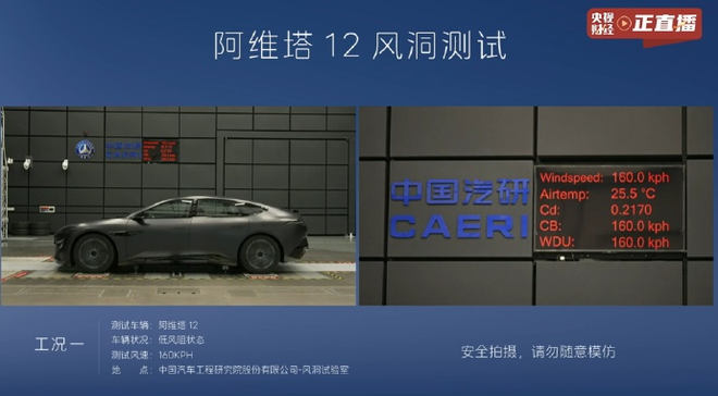 5月9日,阿维塔直接借机变危机为时机,搞上“中汽研权威实测、公证处现场公证、央媒直播”的“权威三件套”,现场测试证实,阿维塔12风阻系数仅为Cd:0.217。