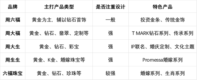 除了周六福,其他四家均已上市,按照备注推断它们依次是:周大福(1929.HK)、老凤祥(600612.SH)、周大生(002867.SZ)、中国黄金(600916.SH)。