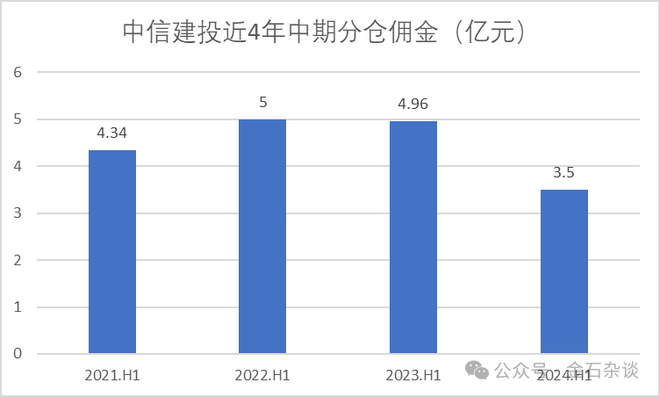 至于武超则负责的研究所业务方面,2024年中期,中信建投分仓佣金下滑明显,前两年有5亿,2024年中期只有3.5亿。一方面和市场环境有关,另一方面则是因为公募改革之下,分仓佣金从万八降至万五,各大券商分仓佣金均录得20%-30%左右的下滑。(后期更新截至2024年的年度数据)