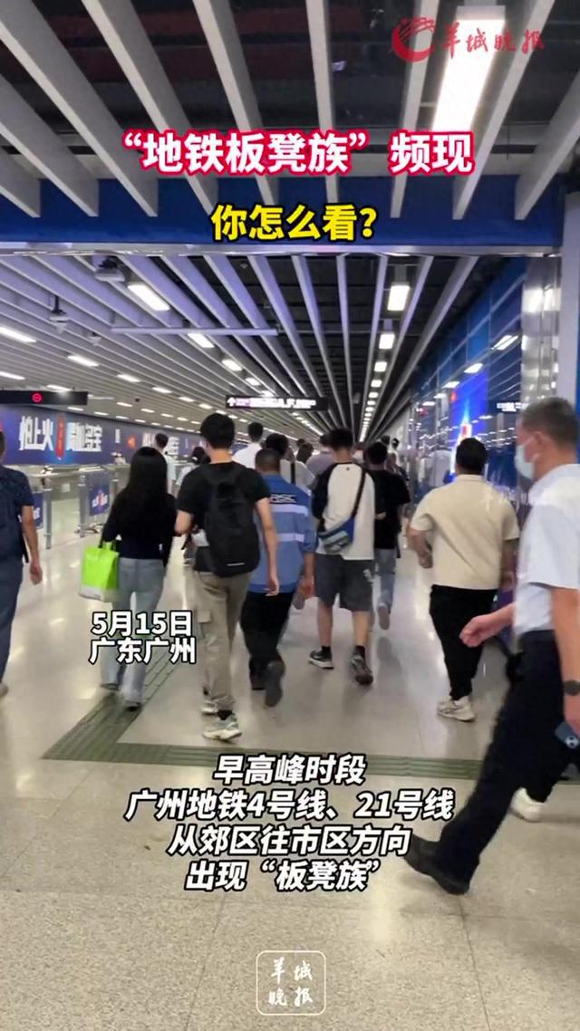 4号线和21号线都是广州地铁线网中行程较长的线路。4号线从南沙到天河,全程超过1小时;21号线从增城到天河,有快车和普通车,但普通车全程也会超过1小时。在市区线路中,“板凳族”相对较为少见。5月15日早高峰时段,记者在1号线列车上观察到,虽然车厢已经挤满,但横跨多个车厢没有看到有人自带板凳或坐在地上。