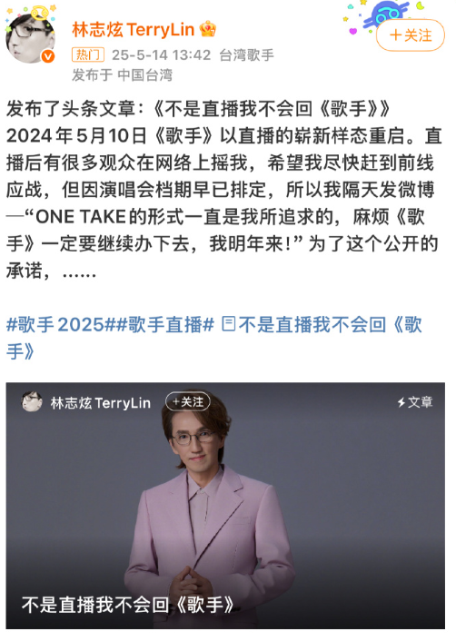 5月14日,林志炫发文: