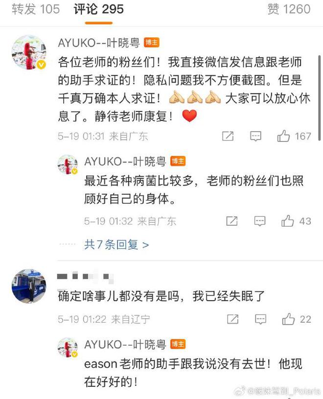 到了19号早晨,不知哪来的消息突然疯传“陈奕迅去世”,甚至有人煞有介事地编出“抢救无效”“家属已抵达”的细节。眼看着话题热度蹭蹭往上涨,叶晓粤赶紧联系陈奕迅助手求证,随后发博澄清:“人好好的!别信谣!”还特意强调“去世新闻纯属虚构”。可这澄清底下的评论,比谣言本身还热闹。
