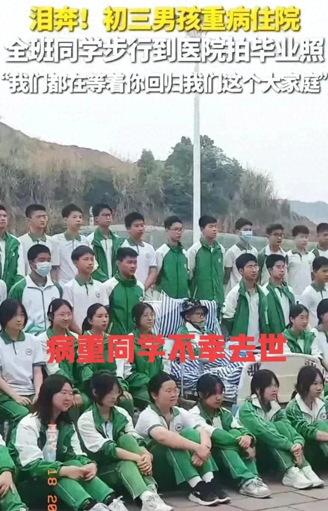 如今再看那张照片,男孩微微仰着头,阳光落在他略显苍白的脸上,身边的同学有的偷偷抹眼泪,有的强装笑脸。有人说这是"最催泪的毕业照",也有人觉得"一别再无相见之日,难忘的一课,珍贵的照片!"短短一句话,道尽了生命的脆弱与人间的温情。