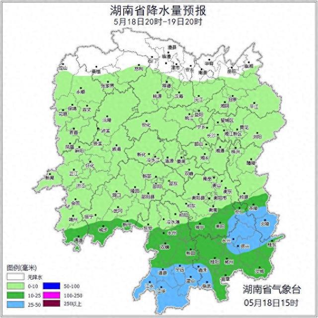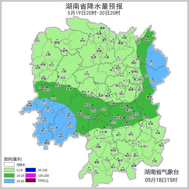 湖南省气象台预计,今天(19日)至21日,大部分地区有小到中等阵雨或雷阵雨,其中今天白天湘南、今晚至21日白天湘中局地大雨。