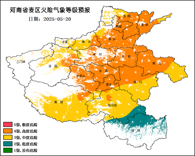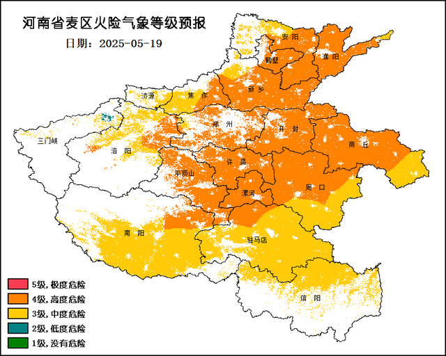同时由于近期高温干燥,全省大部麦区火险气象等级持续偏高,大家在警惕森林火灾的同时,也要警惕麦区火灾的发生。