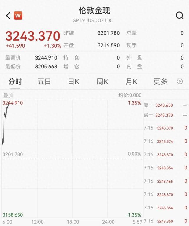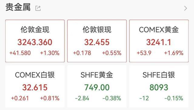 在创下近六个月最大单周跌幅后,黄金价格强势反弹。5月19日早间,现货黄金价格直线拉升,站上3240美元/盎司,涨幅扩大至1.3%。