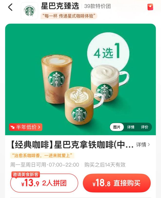 在“补贴大战”的裹挟下,星巴克近两年来也不得不放下身段,在美团、大众点评等平台以低至“18.8元一杯”的促销价格迎合市场。