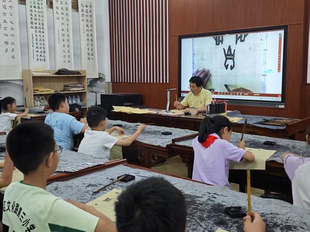 郑州市金水区文化路第三小学甲骨文进校园用毛笔书写汉字起源