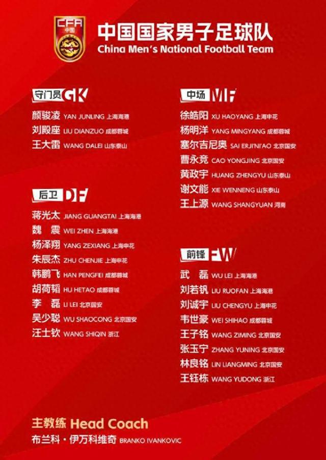 近日完成会籍转换的成都蓉城球员杨明洋(祖籍中国湖北,出生于瑞士,曾入选瑞士U15国家队)首次入选国足,逐渐恢复状态的锋线老将武磊回归——值得一提的是,此次27名国脚仅来自7家中超俱乐部,其中北京国安7人最多,上海海港、成都蓉城各有5人,上海申花4人,山东泰山3人,浙江2人,河南1人,浙江队王钰栋与申花队刘诚宇同为18岁年龄最小,年龄最大球员是山东泰山36岁门将王大雷(恰为王钰栋、刘诚宇两人年龄之和)。