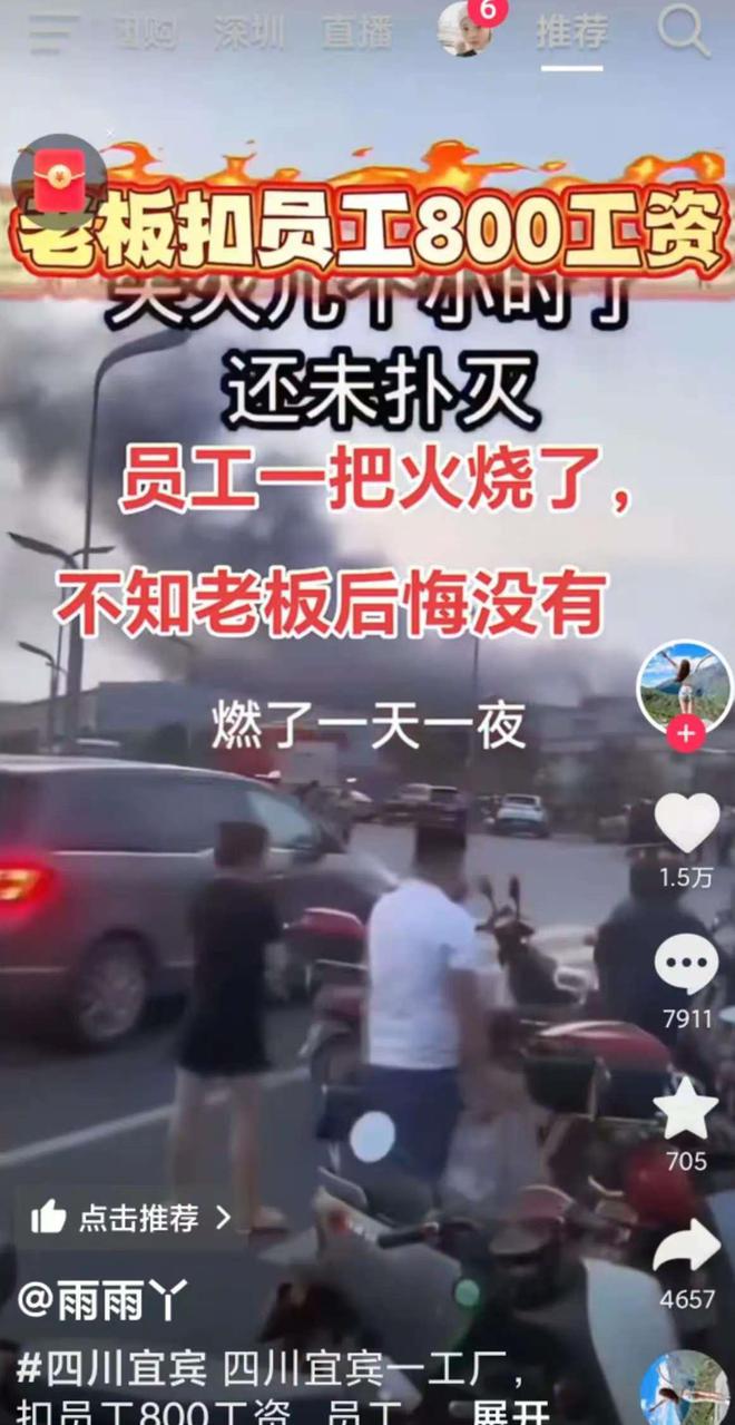 今天刷手机,刷到四川宜宾一场大火的视频。镜头里浓烟遮天蔽日,厂房里的棉纺物烧得噼里啪啦,消防车的灯光在黑夜里转了一宿。有人说这火从520那天中午烧到第二天早上,整整烧了一天一夜,像场盛大又惨烈的烟火秀,只不过这“烟火”代价太大了,厂里的损失估计不小。