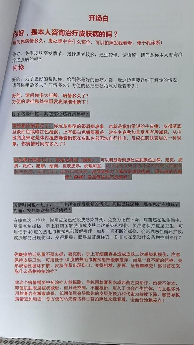 唐女士刷到一条治疗皮肤病的广告,视频里好几个"患者"晒出前后对比图,说是被某省中医世家的老专家治好了。想着死马当活马医,她留了电话。没一会儿,一个自称"张老中医"的人就打来了电话,声音沉稳,说话一套一套的,让唐女士发患处照片过去,说是"望闻问切"。"老中医"看了照片,煞有介事地分析她是"血燥湿热",需要"独家秘方"调理,还说"一人一方,药到病除"。唐女士咬咬牙花了2000多买了一个疗程,结果收到货一看,包装简陋得像小作坊产品,用了半个月一点效果都没有,这才发现被骗了。