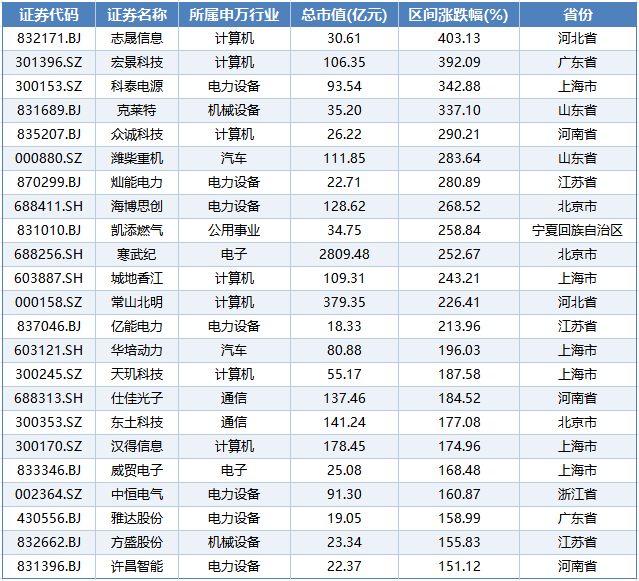 iFinD数据显示,截至5月20日收盘,A股算力概念共有251家公司,近一年内(2024年5月20日至2025年5月20日)股价实现上涨的有216家,股价涨幅超过100%的有31家,股价涨幅超过200%的有10家。