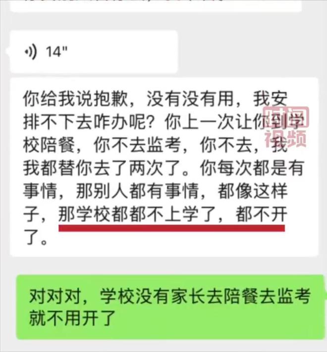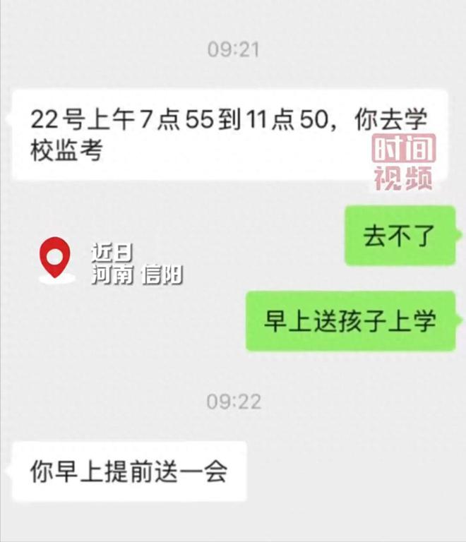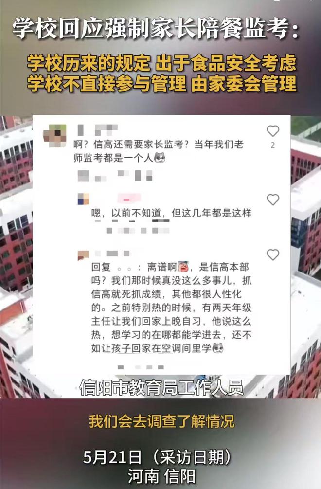 信阳一中学,强制家长到校陪餐和监考,一家长想换人替自己被怼