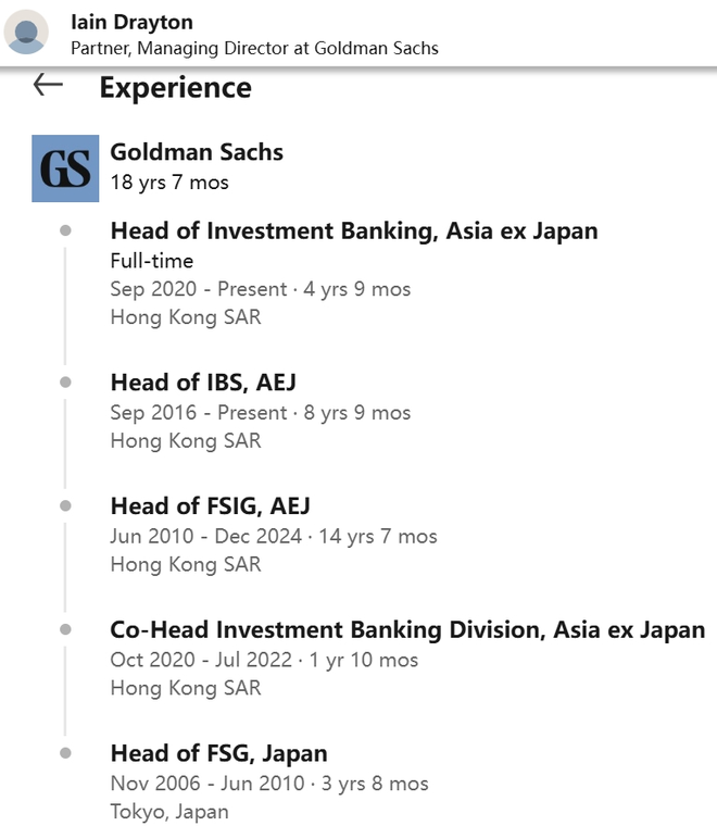 Drayton是高盛的资深员工,已入职近20年。资料显示,他于2006年作为董事总经理加入高盛东京,2010年调往香港,2014年被任命为合伙人。