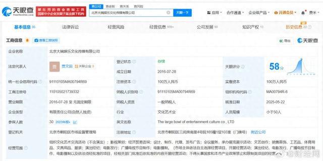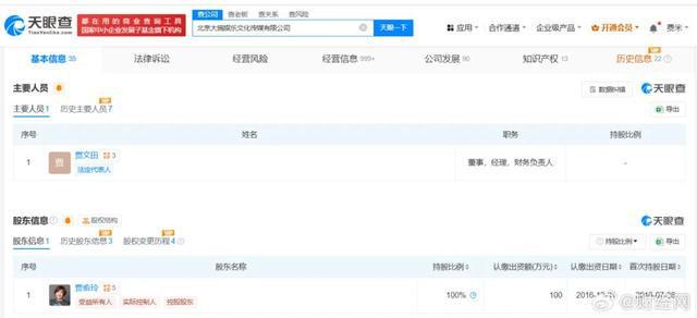 该公司成立于2016年7月,法定代表人为贾玲父亲贾文田,注册资本100万人民币,经营范围包括组织文化艺术交流活动、影视策划、经济贸易咨询等。