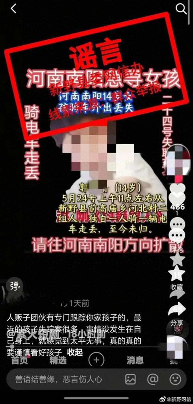 辟谣!网传“南阳14岁女孩被人贩子拐走”为不实信息
