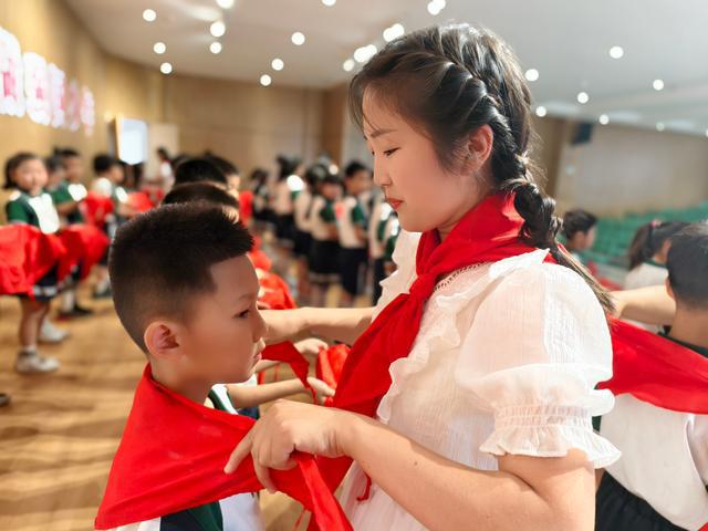 火红队旗指引方向,鲜艳领巾承载理想。5月29日下午,管城回族区和润路小学举行“牢记党的教导 争做强国少年” 2025年少先队新队员入队仪式。一、二年级的新队员光荣地加入中国少年先锋队,开启人生崭新篇章。