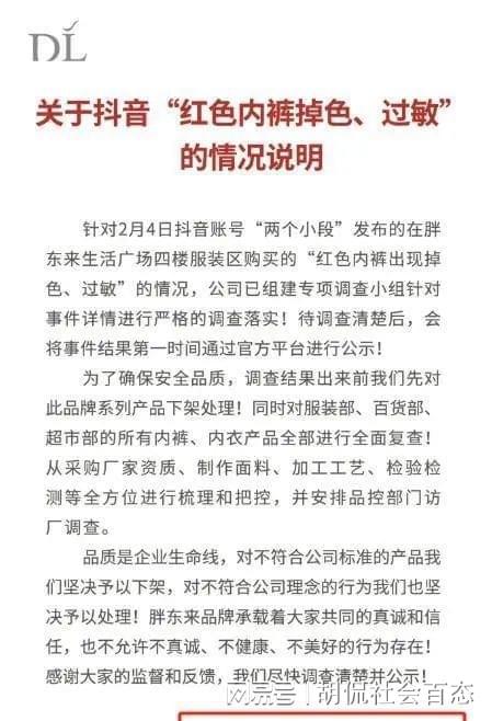 事情是这么起头的:今年2月初,有个叫“两个小段”的博主发了个视频,说在胖东来买的红内裤洗完掉色,穿了还过敏,跑医院看了病,还觉得胖东来的人处理方式不行。这视频一出来,估计好多人都刷到过,毕竟现在自媒体传播速度跟长了翅膀似的。