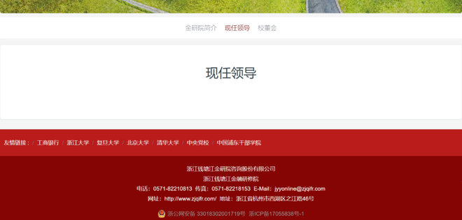 5月27日下午,浙江钱塘江金融研修院官网“现任领导”一栏突现空白,原院长沈荣勤信息消失。