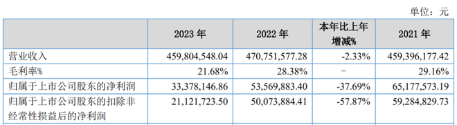 田野股份于2023年2月在北交所上市,4月披露2022年年度报告,公司2022年业绩略微下滑。