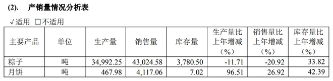 这样看,去年五芳斋的粽子销量出现了显著下滑,且库存压力明显。