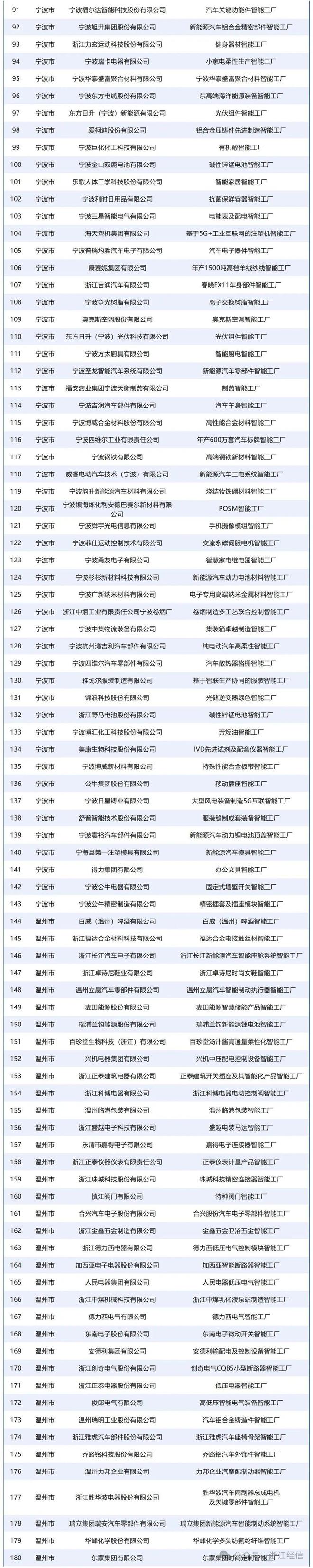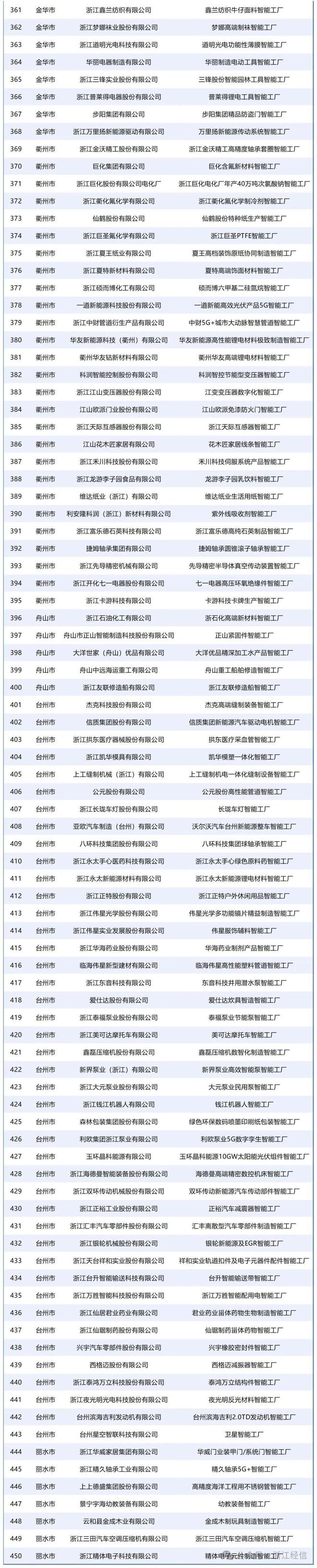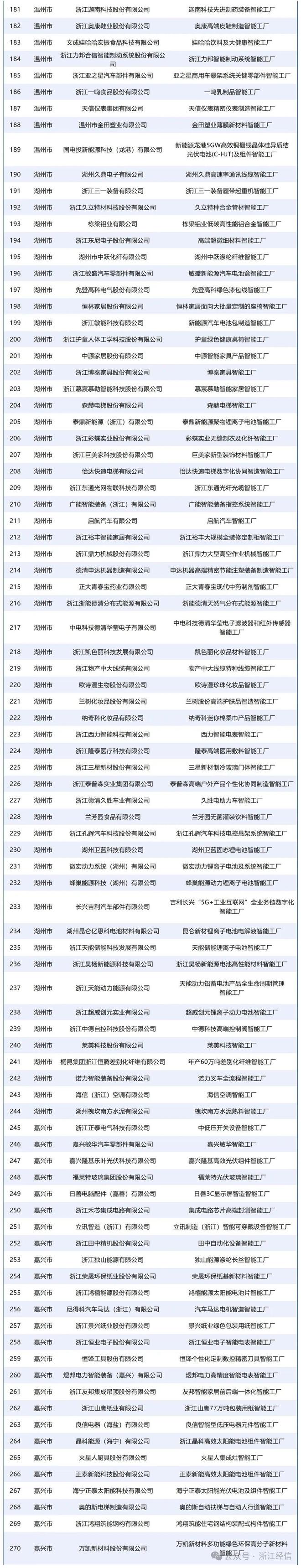 以下是2025年浙江省先进级智能工厂(第一批)名单: