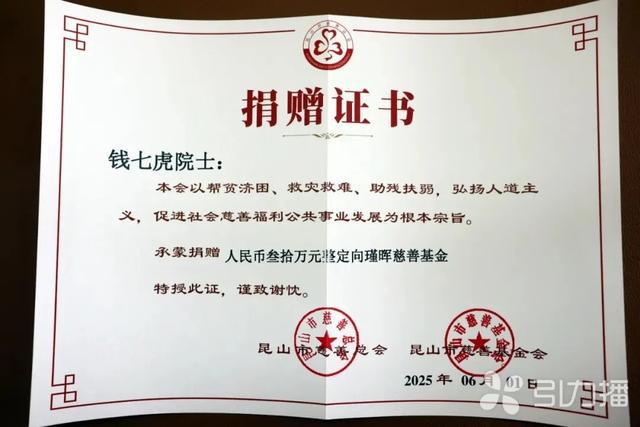“慈善工作很有意义,大有作为,也永远在路上。‘我爱人人,人人爱我’,这样的一个社会非常有力地向世界展示了,我们新中国是怎么样的一个伟大的国家。”在2025瑾晖慈善基金捐赠仪式暨瑾晖“园丁奖”“天使奖”颁奖仪式上,钱七虎动情地说。2025年,钱七虎被评为“长三角慈善之星”和“江苏慈善之星”,成为新时代精神文明的标杆,为国人铸就一座“精神长城”。
