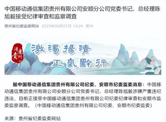 中国移动通信集团贵州有限公司安顺分公司党委书记、总经理陈旭毅被查
