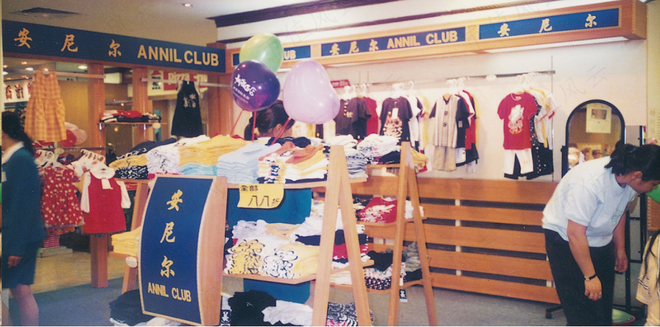 1996年,二人在华强北女人世界2楼开9平米童装小店“安尼尔”,瞄准童装赛道。凭借敏锐时尚嗅觉,王建青主导设计,以“不一样的舒适”理念打开市场。1999年,“Annil安奈儿”品牌诞生,夫妻档转型品牌化运营,开启直营+加盟模式快速扩张。到2017年上市前,安奈儿已发展为全国拥有超800家门店的童装龙头。