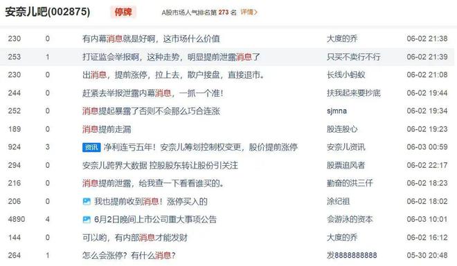 值得注意的是,就在停牌前一天,安奈儿股价强势涨停。很多股民怀疑,是不是消息提前泄露了,并呼吁管理层严查。