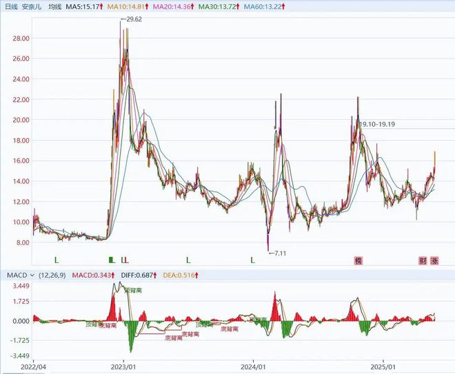 2022年8月,安奈儿对外宣称,公司决定进军“抗病毒抗菌纺织品领域”。2022年11月,安奈儿宣布,其抗病毒抗菌面料预计于次年初进入量产阶段,此消息发布后,公司股价随即在次日达到涨停。11月24日,公司公布与深圳校服协会合作的消息,股价再次涨停。从11月开始,公司股价连续暴涨,短短一个月时间最高涨幅超250%!