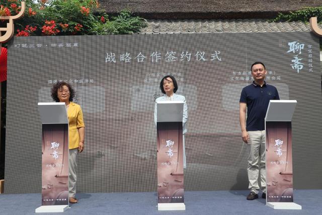 活动最后,围绕创作《聊斋》题材文艺作品、“聊斋 IP”衍生品开发与地方产业联动,以及大型活动策划运营,淄博市文化和旅游局、山东省文化产业投资集团有限公司和东方新感觉(北京)文化传播发展有限公司共同签订战略合作框架协议。同时,为推动音乐剧《聊斋》影视化改编,以东方奇幻美学重塑《聊斋》经典 IP,上海众福文化传媒有限公司与东方新感觉(北京)文化传播发展有限公司签订战略合作框架协议。