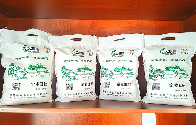 随着粮食产量的增加,如何提升小麦的附加值成为了村“两委”的新课题。经过深入考察与调研,他们决定引进石磨面粉加工设备,打造“富硒石磨面粉”品牌。2023年,随着设备的落地,贴着专属地域标签的“富硒石磨面粉”正式走向市场,赢得了消费者的青睐。