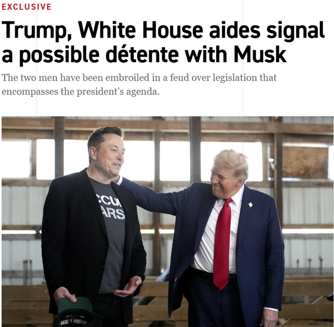 目前,市场焦点聚集于两人能否真正和解,以及“大而美”法案的最终走向。投资者亟需关注这场博弈带来的潜在风险。