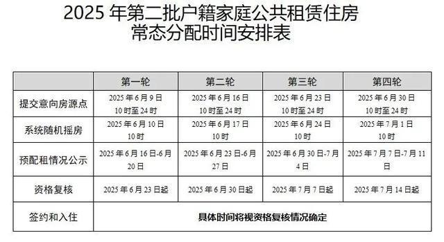 2025年6月23日起,由各区住房保障部门按照规定对获预配租房屋的分配对象进行资格复核。