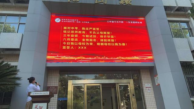 九十班陈俊哲作为毕业生代表发言,他分享了成长感悟与未来展望,坚定的话语中满是对未来的信心。他的发言激情澎湃,豪情满怀,同时,也表达了对老师们的感恩之情和对母校的恋恋不舍。“黄沙百战穿金甲,不破楼兰终不还” 展现毕业生的奋勇向前,更代表着对中考的必胜信念。