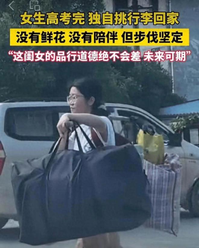 独自挑行李回家的高考女生上热搜,女生的基本情况曝出,网友爆评