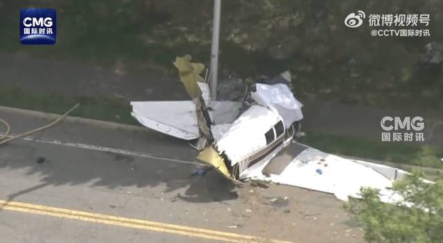 美国媒体的航拍画面显示,飞机残骸撞上电线杆后横亘在道路上,路边树木间可见散落的碎片,另有部分残骸散落在路面。事故原因正在调查中。