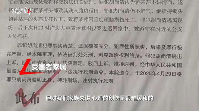 网上传开一份法院布告的那天,湖南永州文屯村的老少爷们心里都像压了块石头。布告上的名字他们太熟悉了——胡尚清,那个平时闷头种地的汉子,因为一锄头敲死了村支书蒋某萍,在2025年4月29日被注射执行了死刑。消息传到蒋家时,家属望着窗外两家相隔不远的稻田,怎么也想不通:抬头不见低头见的邻居,前几天还在村口打招呼,怎么就因为一堆草木灰闹出了人命?