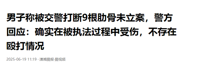 男子称被交警打断9根肋骨未立案,警方做回应,网友炸锅
